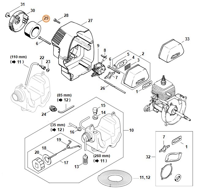 Wysokiej jakości oryginalny filtr do urządzeń STIHL: FS 44, FS 44 R, FS 40, FC 44, FS 36 R.