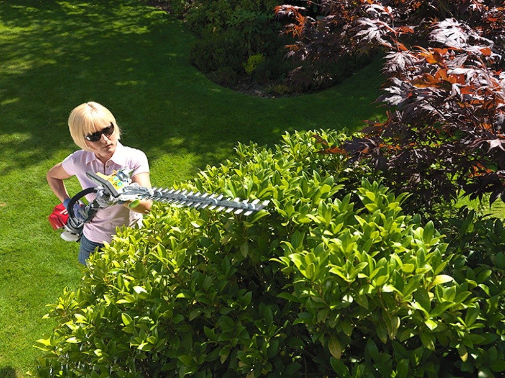 Dwustronne ostrze tnące o długości roboczej 55 cm umożliwia szybkie i dokładne modelowanie roślin bez potrzeby schylania się czy nadmiernego obciążania pleców.