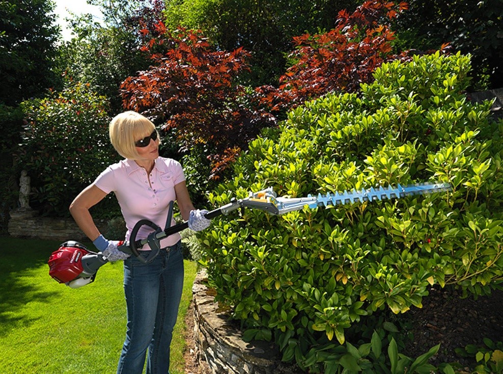 Kompaktowe nożyce do żywopłotu SSHE SE Honda Versatool to przystawka zaprojektowana z myślą o precyzyjnym przycinaniu niższych krzewów oraz żywopłotów wolnostojących.