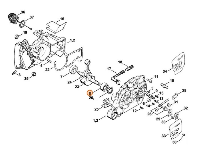Wysokiej jakości oryginalne łożysko kulkowe 15x35x13 do urządzeń STIHL: MS 440, 044, 044 W, 044 C.