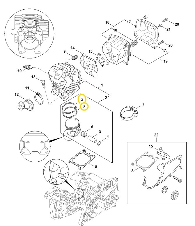 Wysokiej jakości oryginalny pierścień tłokowy Ø 52x1,2 mm do urządzeń STIHL: MS 462, MS 462 C-M, MS 462 C-M R, MS 462 C-M VW.