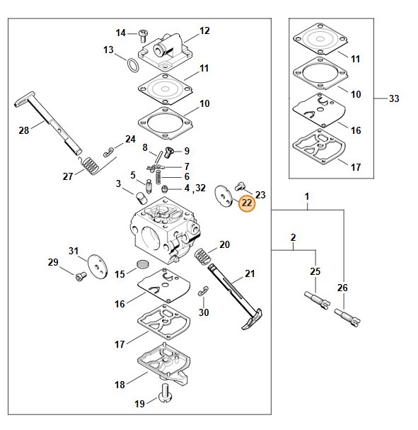 Wysokiej jakości oryginalna przysłona głównej przepustnicy do urządzeń STIHL: MS 170-D, 018 C, 017 C, 017, MS 170, MS 180 C-BE, MS 170 C-E D, 018, MS 180.