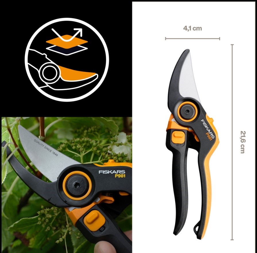 - Idealny do przycinania kwiatów, krzewów i młodych pędów drzew