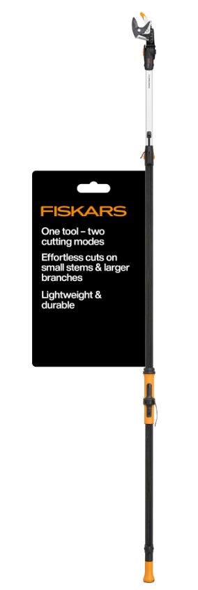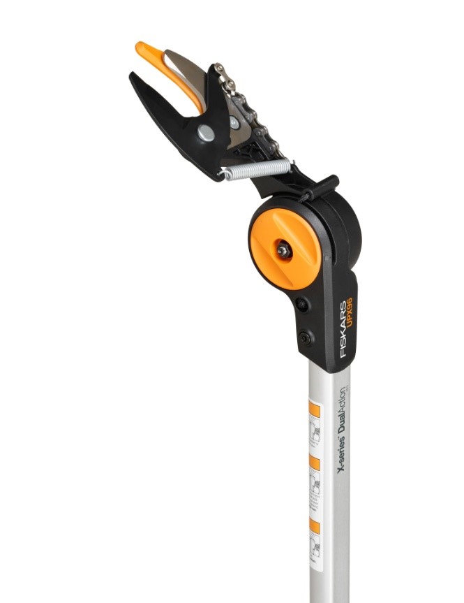 Sekator ogrodowy na wysięgniku FISKARS X-series DualAction™ Żyrafa UPX96 (1080131) to wszechstronne narzędzie stworzone z myślą o wygodnej i efektywnej pielęgnacji drzew oraz wysokich krzewów – bez konieczności używania drabiny. Dzięki innowacyjnemu mechanizmowi DualAction™ użytkownik może korzystać z dwóch trybów cięcia w jednym urządzeniu: szybkie, dynamiczne cięcie sprawdzi się przy cieńszych gałęziach o średnicy do 16 mm, natomiast tryb zwiększonej siły umożliwia bezproblemowe przycinanie grubszych konarów do 32 mm.