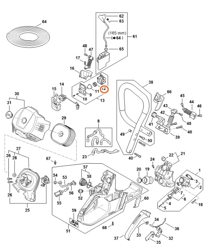 Wysokiej jakości oryginalna sprężyna do pilarek spalinowych Stihl: MS 500i, MS 500i-W.