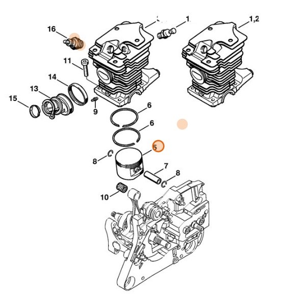Wysokiej jakości oryginalny tłok Ø 44 mm do urządzeń STIHL: MS 270, FS 480, FR 480.