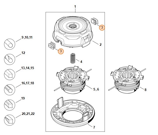 Wysokiej jakości oryginalna szpula zamienna do urządzeń STIHL: Głowica kosząca AutoCut 56-2, Głowica kosząca AutoCut 36-2, Głowica kosząca AutoCut 46-2.