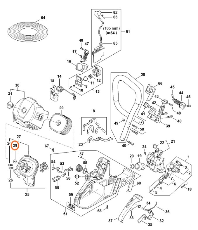 Wysokiej jakości oryginalna uszczelka do pilarek spalinowych Stihl: MS 500i, MS 500i-W, MS 661, MS 194 T, MS 193 T, MS 661 C-M VW, MS 194 C-E, MS 193 C-E, MS 661 C-M.