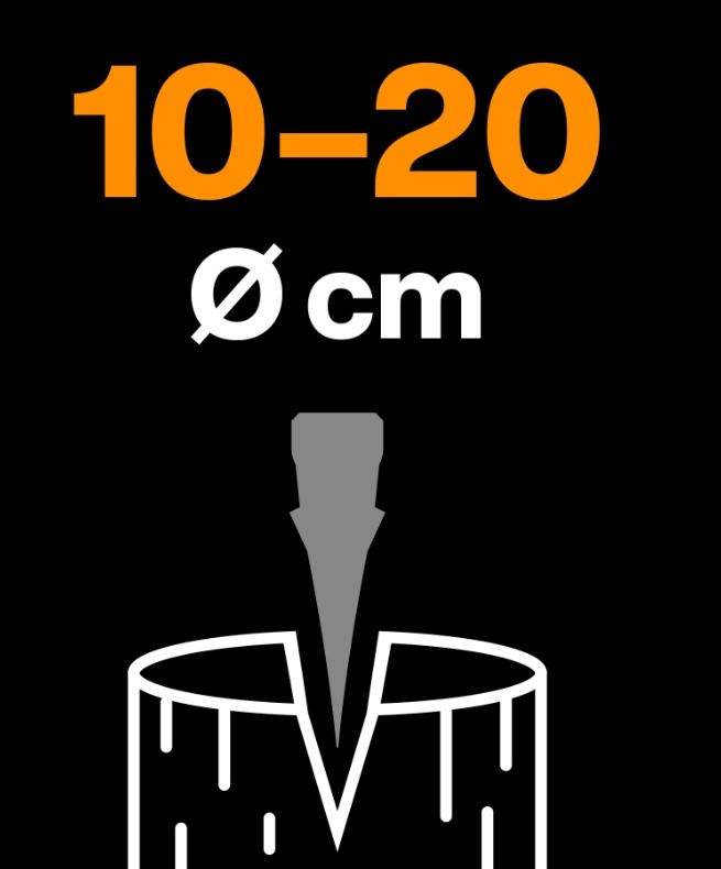 - Siekiera rozłupująca do pni o średnicy 10–20 cm