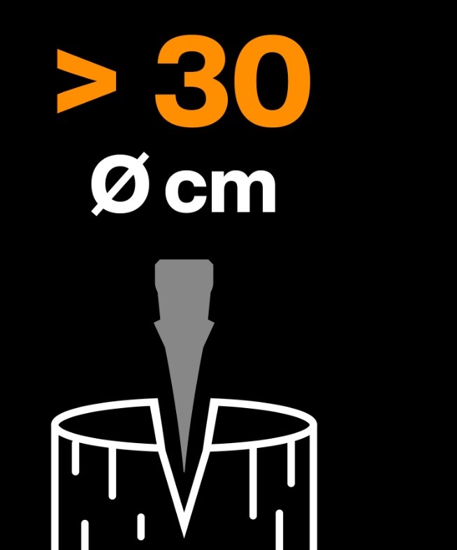 - Szersze ostrze z klinem rozłupującym – skuteczne rozłupywanie dużych kłód